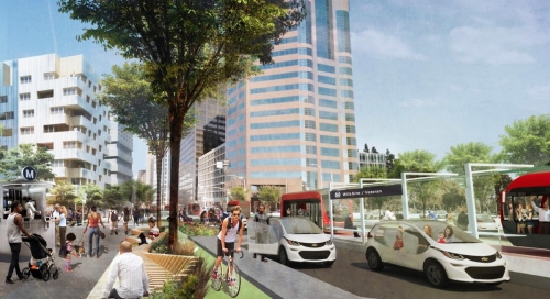 The My Figueroa streetscape update includes all these changes and more, and it's already providing important lessons for future street redesigns. Through it we've seen the popularity of protected bike lanes and off-board transit stops, but also the challenges of coordinating multiple departments and encouraging new behaviors for road users, regardless of mode. As we implement future streetscape plans such as 7th Street and Main & Spring Forward, we must learn from past mistakes, build on our successes, and continue to test out new and innovative approaches.